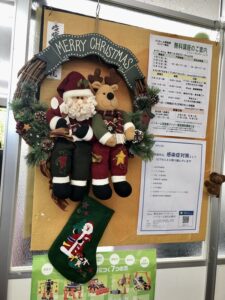 HOME > パソルームブログ > クリスマスカラーに・・(弥生台教室) クリスマスカラーに・・(弥生台教室) 今年も弥生台教室ではクリスマスディスプレーで生徒さんをお迎えします。 まずはいつもの窓際のディスプレーコーナーには熊谷好子さん作品のフラワーアレンジメント! クリスマスカラーの赤とホワイトのバランスが素敵ですね。 そしてお教室入り口にはサンタさんがお出迎えです。 (ひらさか)