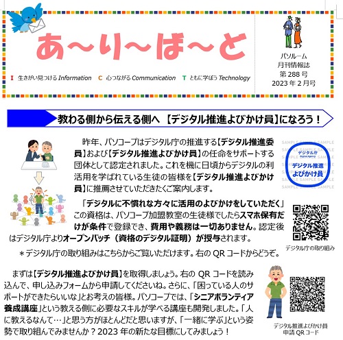 あ~り~ば~ど2月号でご案内している【デジタル推進よびかけ員】皆さんはもう申請されましたか?