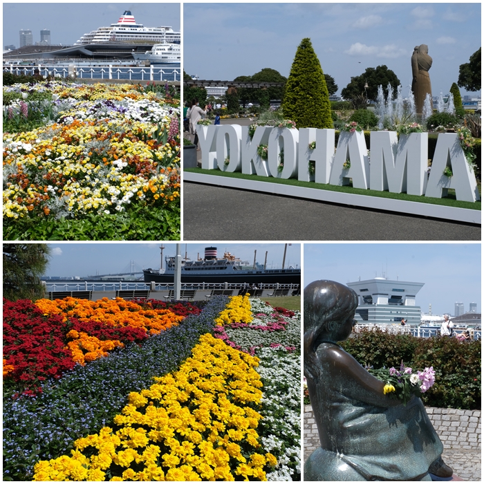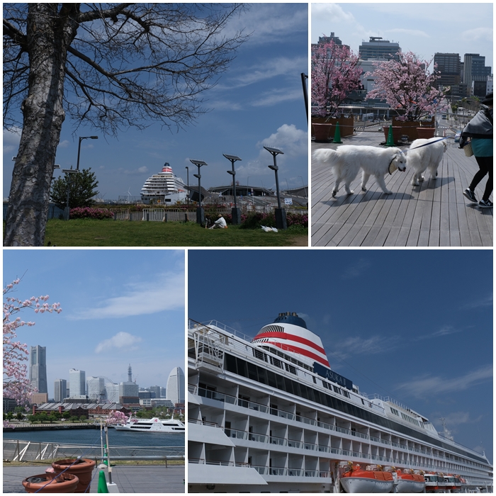 横浜公園のチュウリップや山下公園の花壇展を見て、氷川丸を背景にお花を撮り、大さん橋にアスカⅡが入船、そろそろ船旅もはじまります。