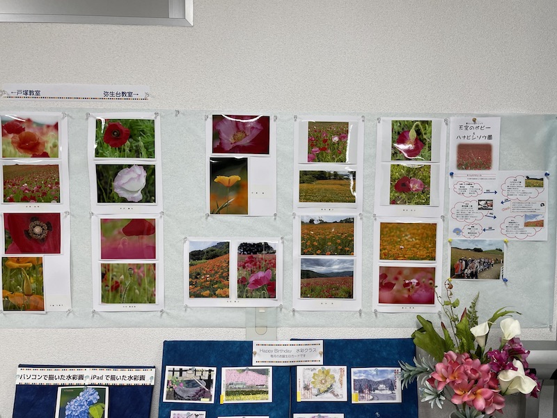 5月26日に開催された「春のバスピクニック 天空のポピー&ハナビシソウ園」にご参加された皆様の写真を、戸塚・弥生台教室に展示して『ミニ写真展』を開催しております♪