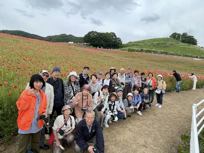 昼食「割烹旅館 二葉」→14時:天空のポピー→サービスエリアでお買い物→戸塚を経由して、19時半:弥生台到着!』