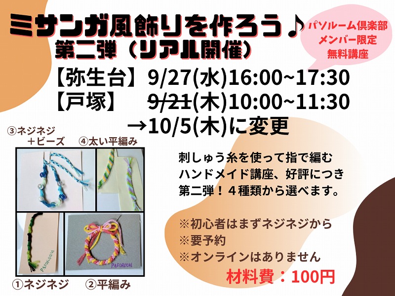 ミサンガ風飾りを作ろう♪第二弾(リアル開催)