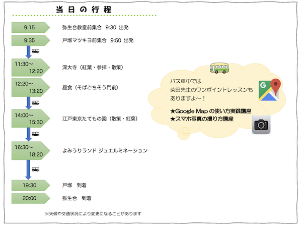 出発:弥生台教室前 9:30/ 戸塚マツキヨ前 9:50