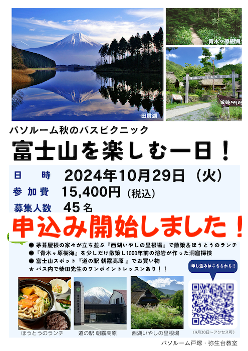 秋のバスピクニック『富士山を楽しむ一日』のお申し込みがスタートしました♪