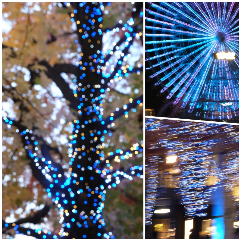 暗くなってからは、イルミネーションが赤く残った葉とコラボして、いつも見る暮れの景色とは違い新鮮でした。温暖化が影響して変わったイルミネーションが見られました。