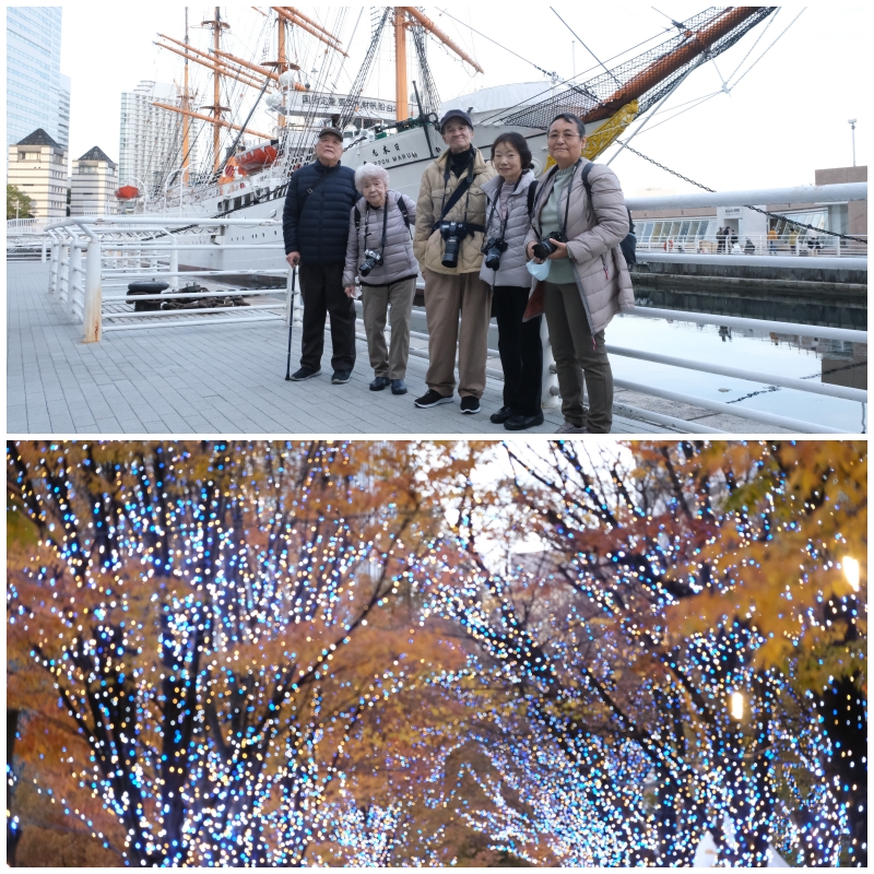 先生のレポートにもありましたが、温暖化のお陰(?!)で紅葉とイルミネーションのコラボを楽しまれたようですね。昼〜夕〜夜と、それぞれの時間に合わせた撮影もできて、今年最後の撮影会は有意義な一日になったようです。来年の座学でみなさんの写真を拝見するのが楽しみです。