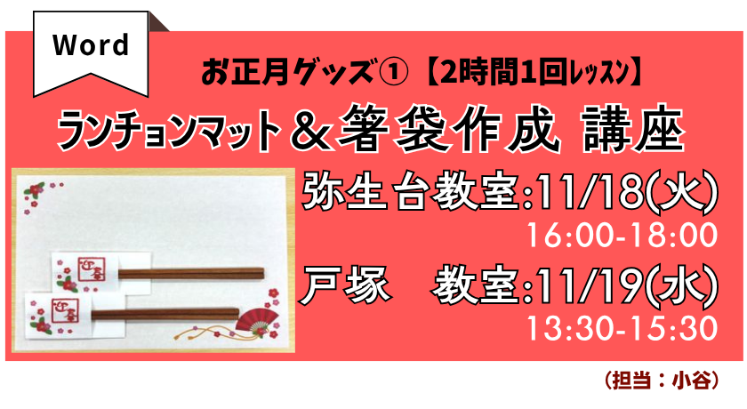 【1回講座】正月グッズ①~ランチョンマット&箸袋作成講座~(Word)
