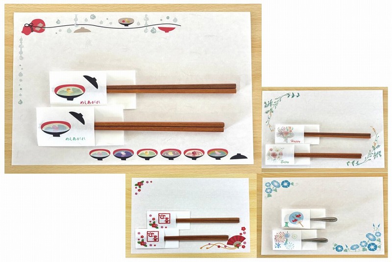 箸袋は、ひな形にイラストや文字を加えて仕上げます。