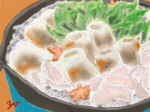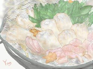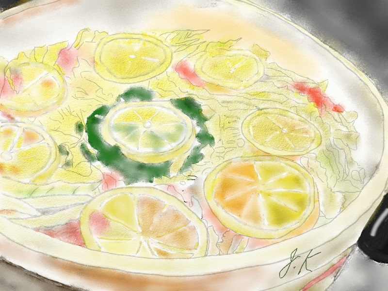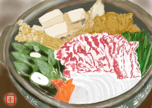 さてー2月の水彩クラス作品は「冬いろいろ・・・」と題して冬の花、冬野菜、そして冬には外せないお鍋もかきましたよ~!!