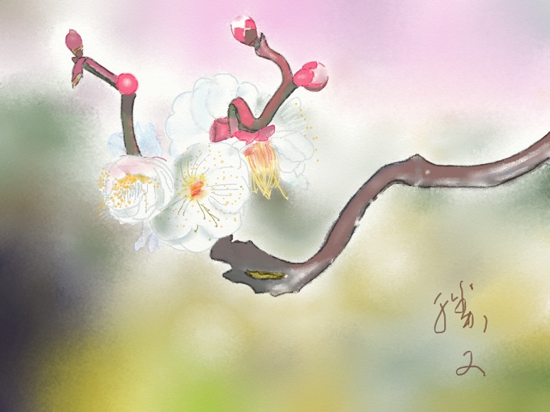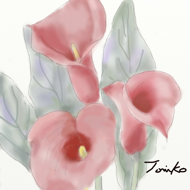 水彩クラスではiPad(ArtRageのアプリ)とパソコン(水彩7のソフト)を使って季節をテーマに楽しく水彩画を描いています。