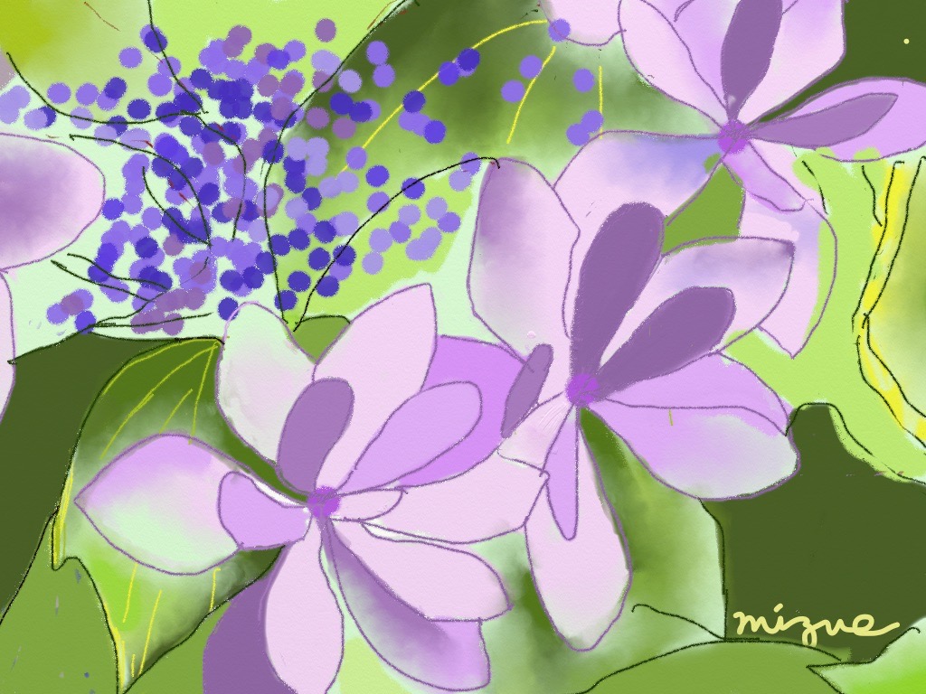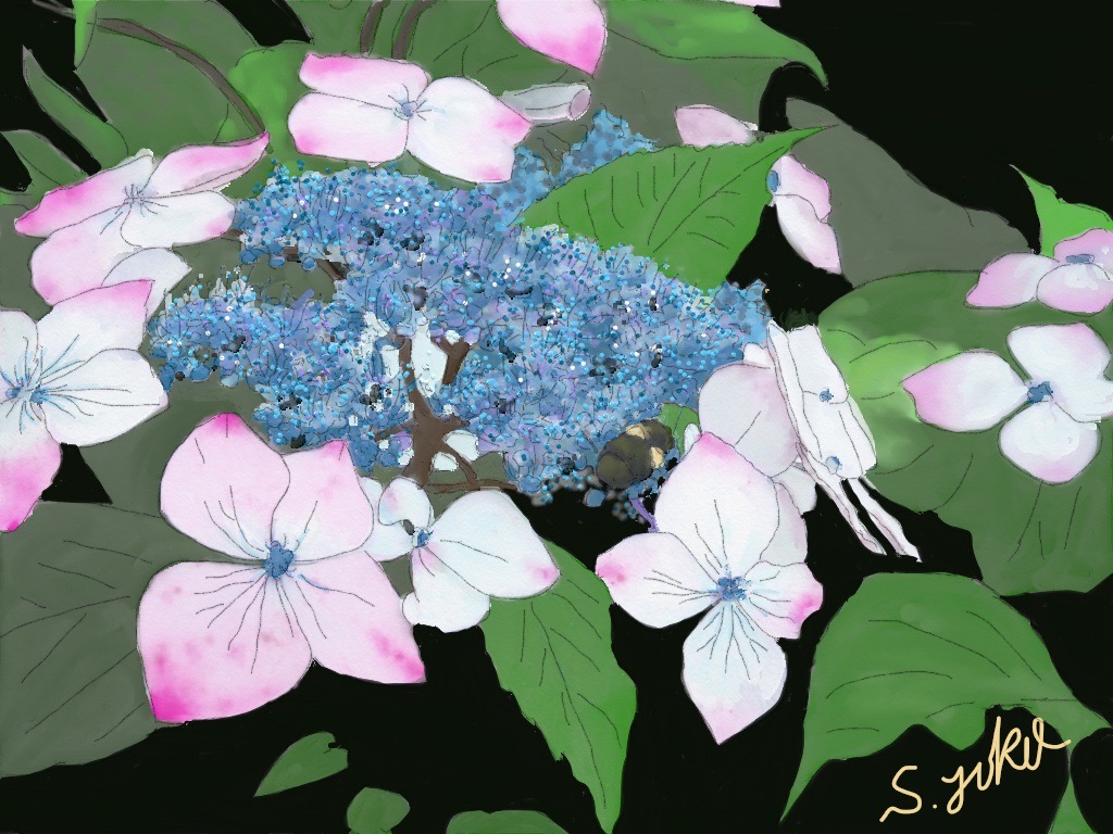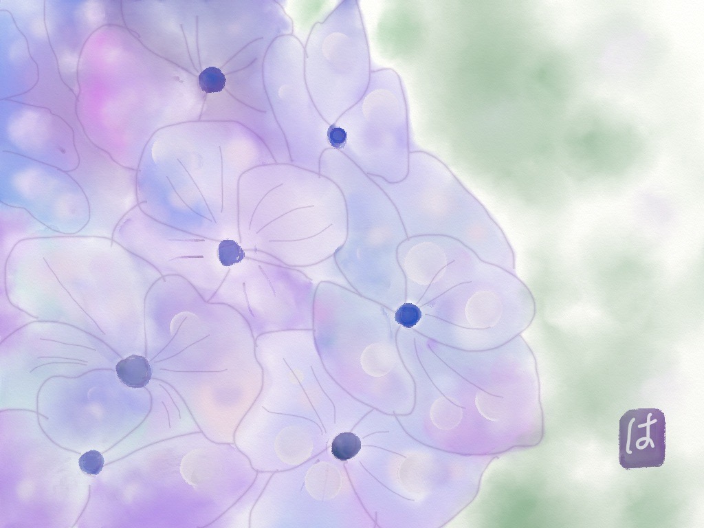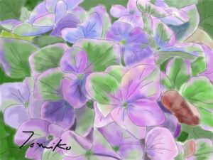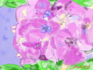水彩クラス生徒作品6月(紫陽花)