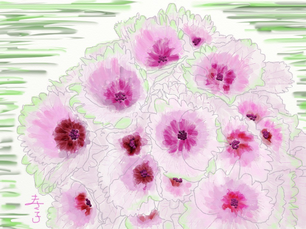水彩クラスではiPad(ArtRageのアプリ)とパソコン(水彩7のソフト)を使って季節をテーマに楽しく水彩画を描いています。