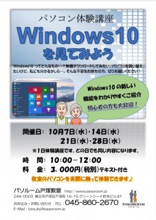 10/7(水)から毎週水曜日にWindows10体験講座が始まっております♪