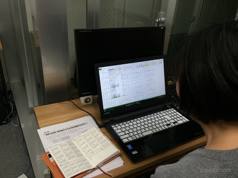 パソコープのカレンダーもとても素敵なのですが、手軽に作れる小さなカレンダーも欲しいかな、と思い、一つ作ってみました。コルクボードなどに貼り付けて、1ヶ月ずつめくるタイプ。