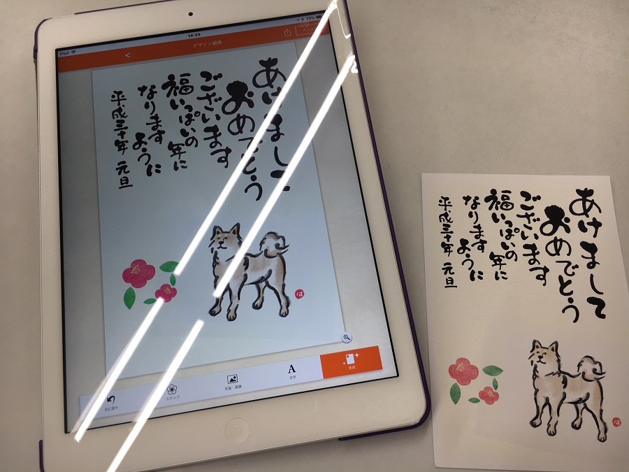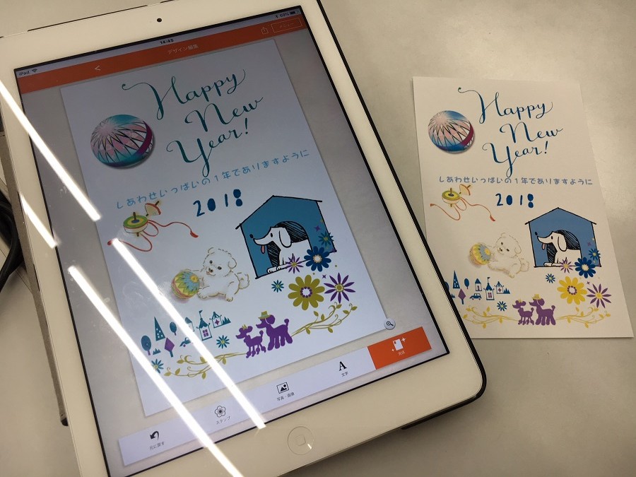 iPad活用クラス(弥生台教室)では先日「11月パソルーム倶楽部無料講座」で描いた柴犬を使って年賀状を作りました。