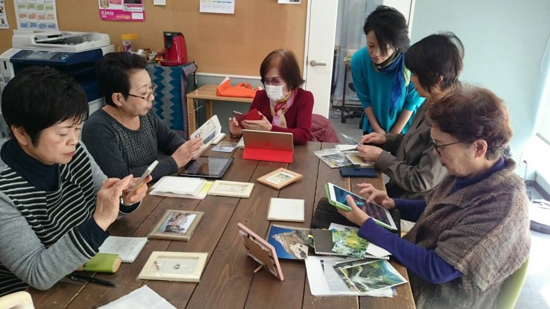 皆さまそれぞに、お互いの作品を見せ合いながら、