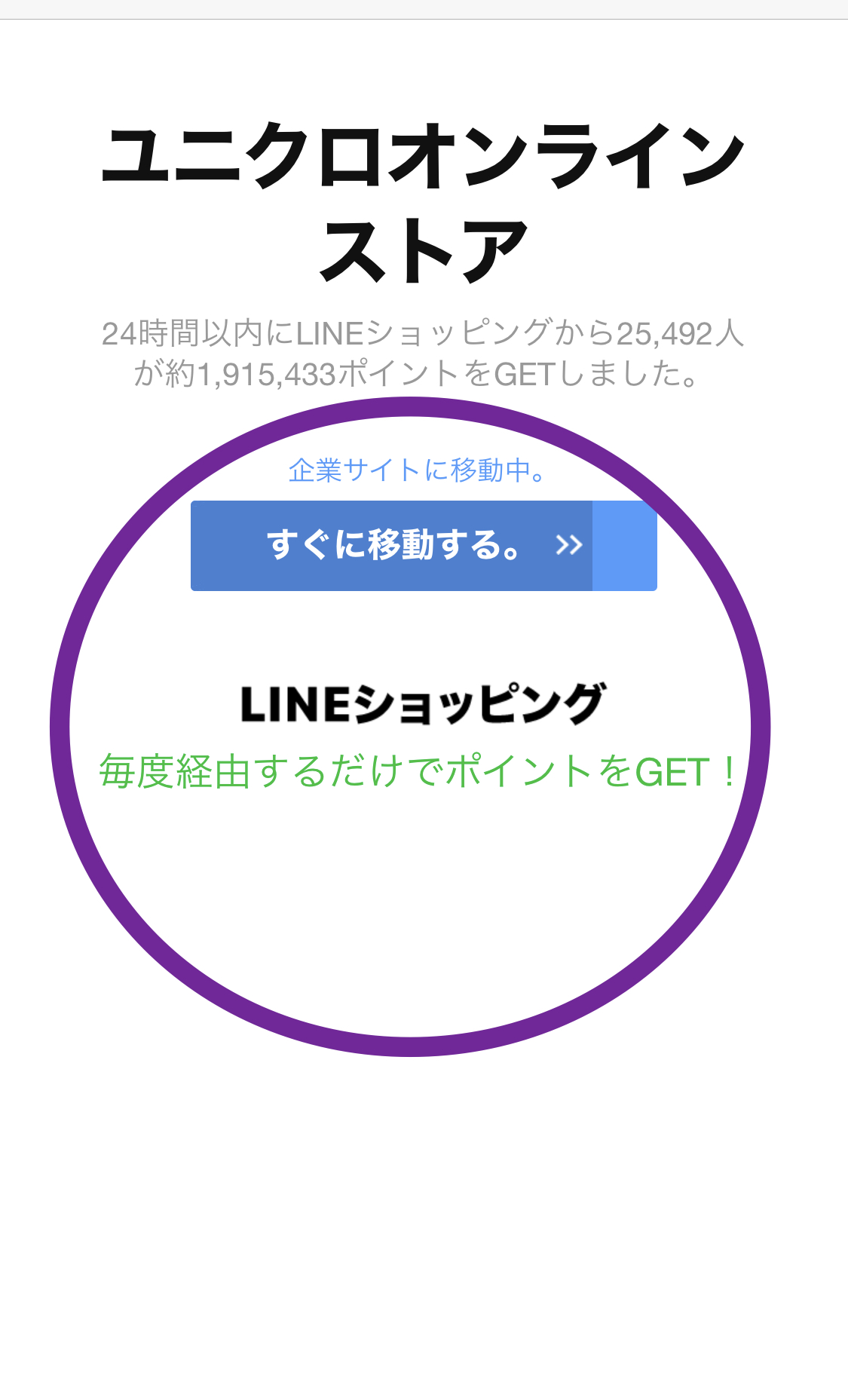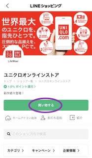 これでユニクロオンラインストアが開きます。ユニクロアプリから購入するよりわずかですがポイントが付くのでお得!