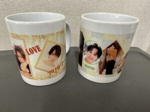 HOME > パソルームブログ > 世界にひとつのマグカップ作りました。 世界にひとつのマグカップ作りました。 水彩クラスのSさん、Kさん、Nさんは自分の作品の水彩画を入れてマグカップを作りました。 (画像の上でクリックすると大きな画像でご覧いただけます。) こちらは東方神起「YUNO」の大大ファンのAさんのマグカップ!そしてお嬢さんがファンだと「アリサマ―」のマグカップはそのお嬢さんには内緒のプレゼントだそうです。 (画像の上でクリックすると大きな画像でご覧いただけます。) 世界にひとつのマグカップ作成はとても楽しいですね。 (ひらさか)