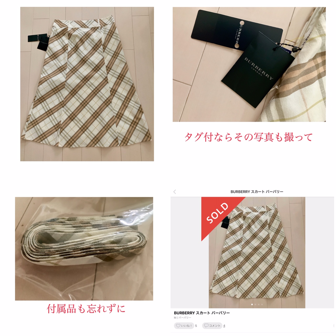 着る機会がなく、未使用だったバーバリーのスカートも喜んでくださる方の手元へ。