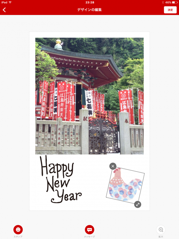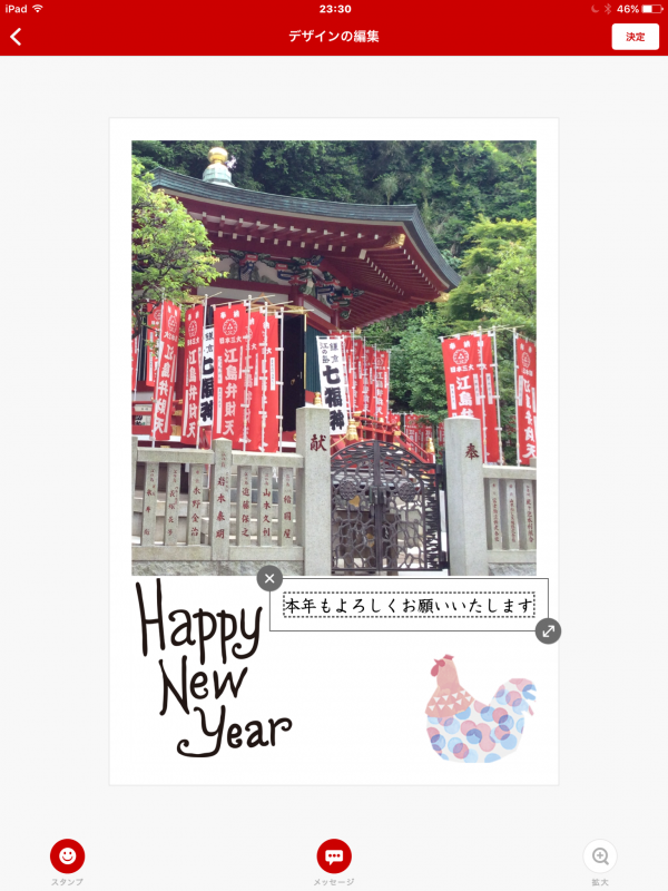 こんな感じに、楽しい年賀状が、簡単に作れます♪