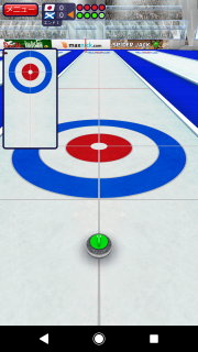 飛距離(スピード)を計算しつつ、狙いを定めてストーンを投げます。