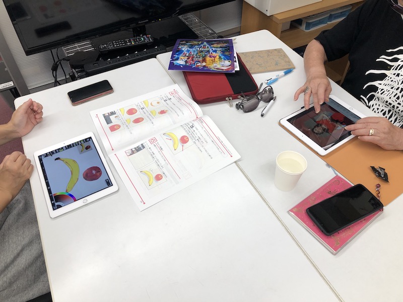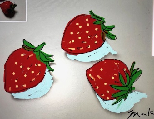 ●Sさんは、ArtRageの使い方を覚えるために、テキストを見ながらお絵かき。りんととバナナ、そしてイチゴのの絵を描きました。