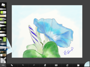 まずは素材の写真をアプリのお道具の鉛筆でなぞって描きます。それに色を付けていく為絵心のない方または初心者の方でも安心して描けます。