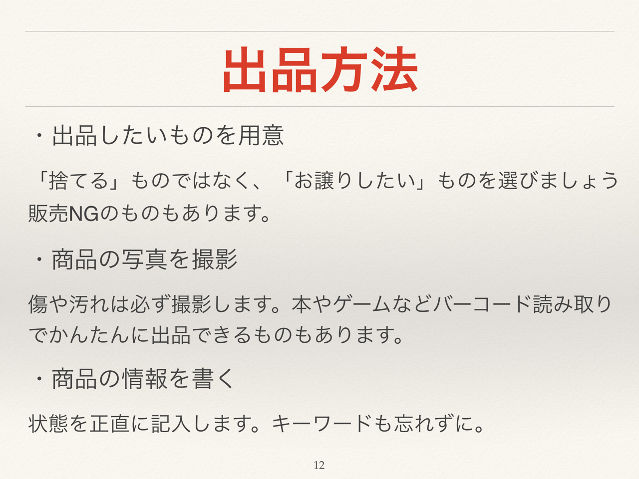 皆さまが興味津々なのはやはり出品についてですね。購入することに比べて少しハードルが高いですが、とにかく一歩踏み出さないと始まりません。