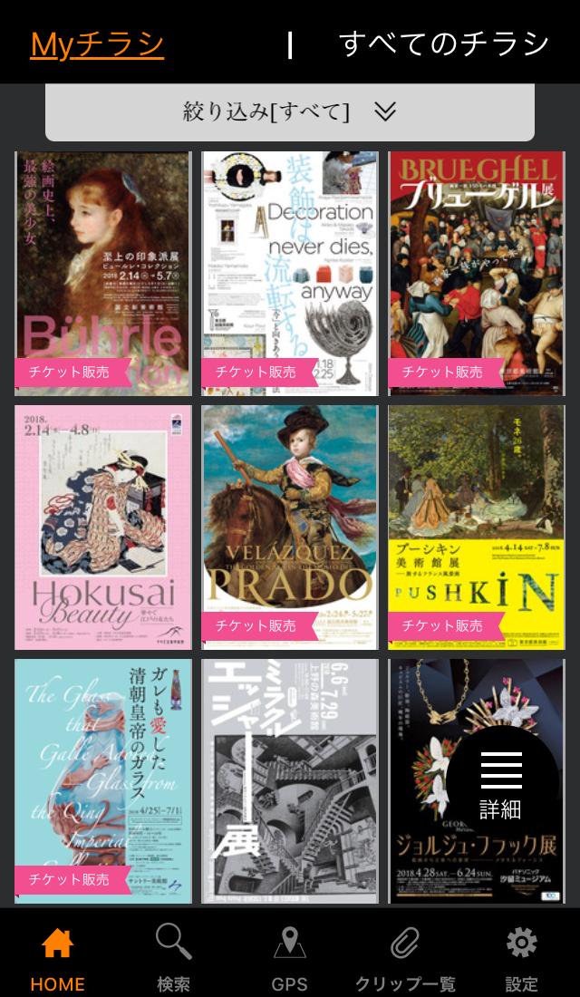 「チラシミュージアム」は、全国700以上の美術館や博物館、アートイベント、展覧会などの情報に特化したチラシアプリで、人気のイベントから行きたい場所を探したりGPS検索で近くで開催されている展覧会から探したりすることができるとっても便利なアプリです。