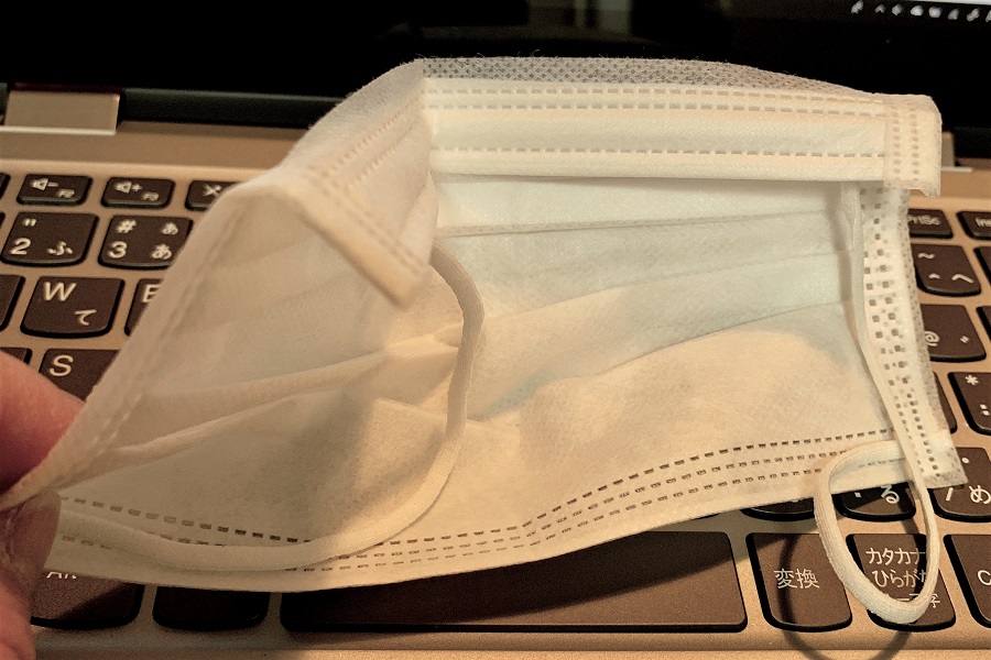 知り合いからマスクの上の部分を一折中に折って使うと曇りにくいよ、と聞いたので試してみました。なるほど、かなり曇りが軽減されます。