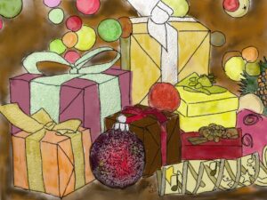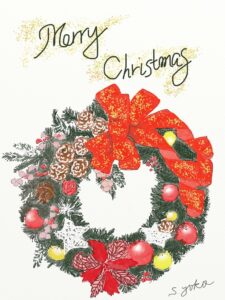 今回の作品は12月にふさわしくクリスマス素材をiPadまたはパソコンで描きました。