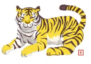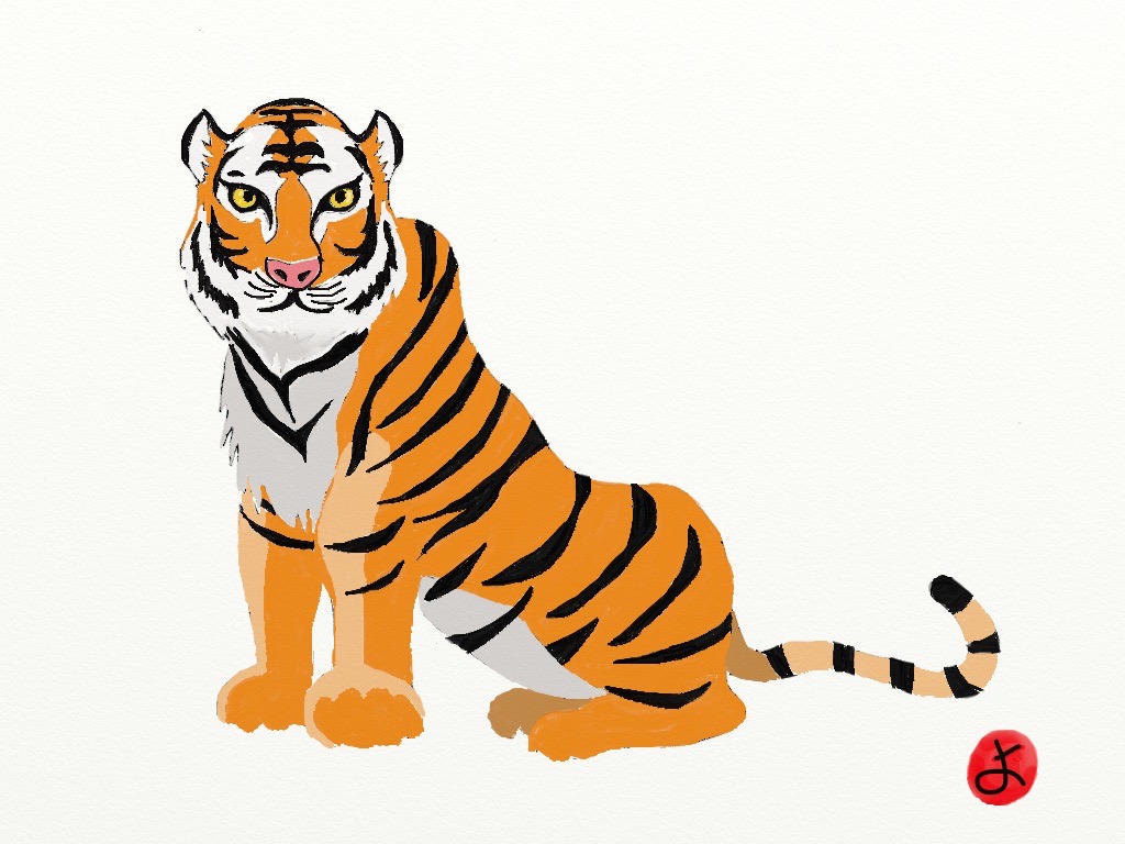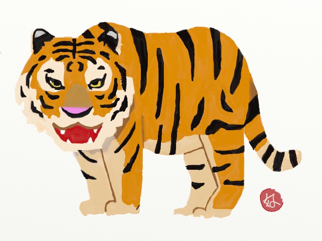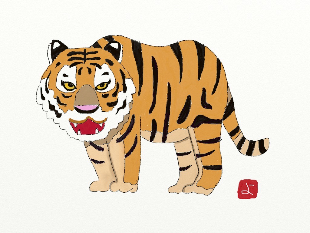 今年は寅年ですね。年末にその干支の寅を描きました。