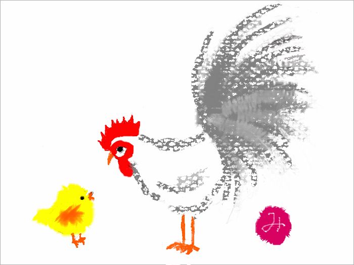 HOME > パソルームブログ > 「にわとりの親子」を描きました。 「にわとりの親子」を描きました。 来年の干支は酉! 水彩クラスでは「ゆめいろえのぐ」(フリーソフト)でにわとりの親子を描きました。 ほのぼのとした感じが伝わってきますね!! 描いた絵は.jpgで保存しますので来年のカレンダー・年賀状に使えます。 *お知らせ* 11月のパソルーム倶楽部無料講座ではこの干支(にわとりの親子)を描きます。 11/24(木)16:00~18:00、弥生台教室で開催します。 ぜひご参加くださいませ~(^_-)-☆ 水彩クラス担当:平坂でした。