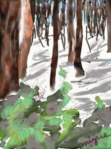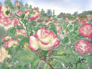 水彩クラスではiPad(ArtRageのアプリ)とパソコン(水彩7のソフト)を使って季節をテーマに楽しく水彩画を描いています。