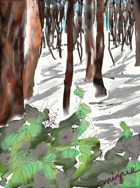 まずは素材の写真をアプリのお道具の鉛筆でなぞって描きます。それに色を付けていく為絵心のない方または初心者の方でも安心して描けます。