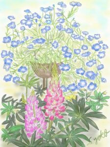 水彩クラスではiPad(ArtRageのアプリ)とパソコン(水彩7のソフト)を使って季節をテーマに楽しく水彩画を描いています。