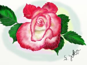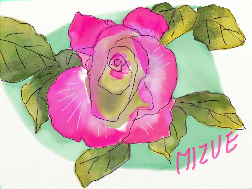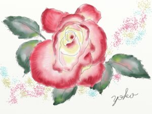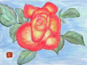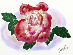水彩クラス生徒作品(iPadで薔薇を描く)