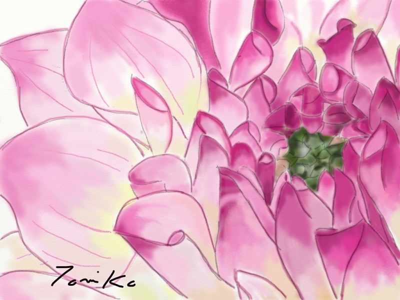 水彩クラスではiPad(ArtRageのアプリ)とパソコン(水彩7のソフト)を使って季節をテーマに楽しく水彩画を描いています。