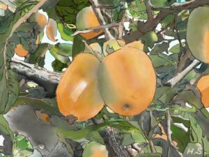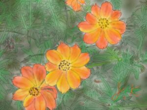 まずは素材の写真をアプリのお道具の鉛筆でなぞって描きます。それに色を付けていく為絵心のない方または初心者の方でも安心して描けます。