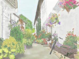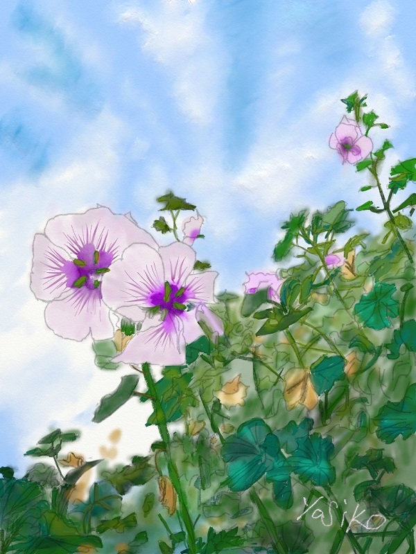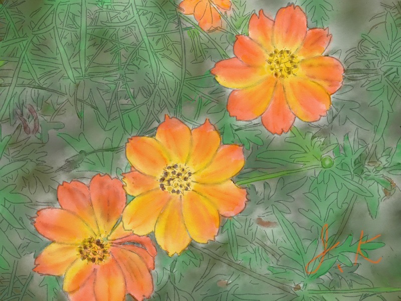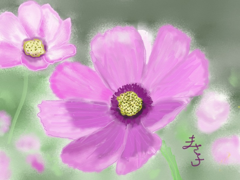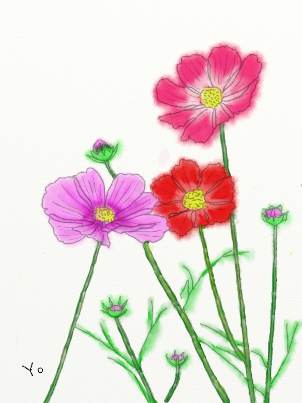 水彩クラスではiPad(ArtRageのアプリ)とパソコン(水彩7のソフト)を使って季節をテーマに楽しく水彩画を描いています。