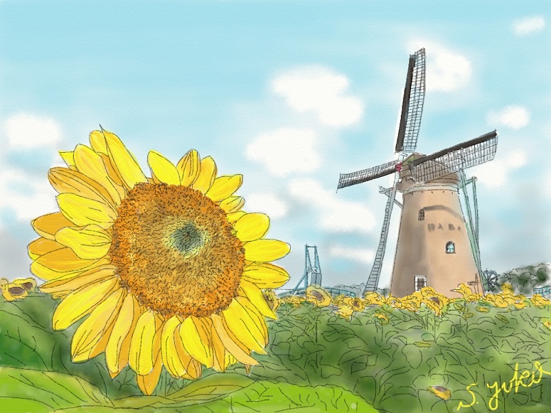 水彩クラスではiPad(ArtRageのアプリ)とパソコン(水彩7のソフト)を使って季節をテーマに楽しく水彩画を描いています。