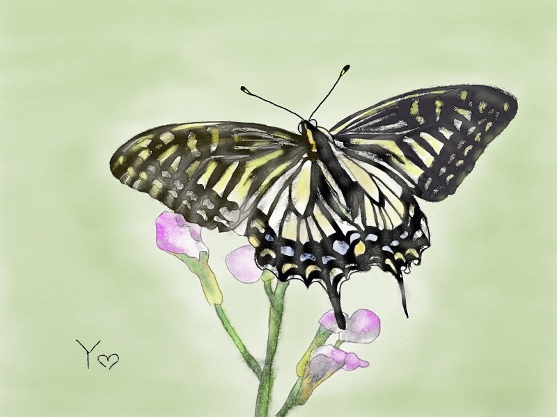 まずは素材の写真をアプリのお道具の鉛筆でなぞって描きます。それに色を付けていく為絵心のない方または初心者の方でも安心して描けます。