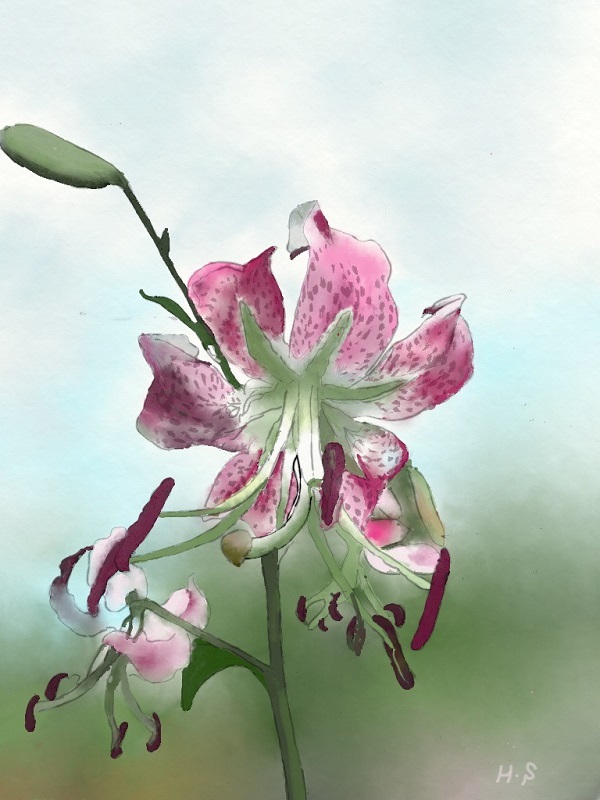 水彩クラスではiPad(ArtRageのアプリ)とパソコン(水彩7のソフト)を使って季節をテーマに楽しく水彩画を描いています。