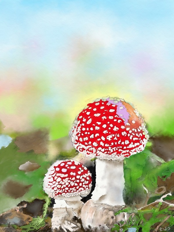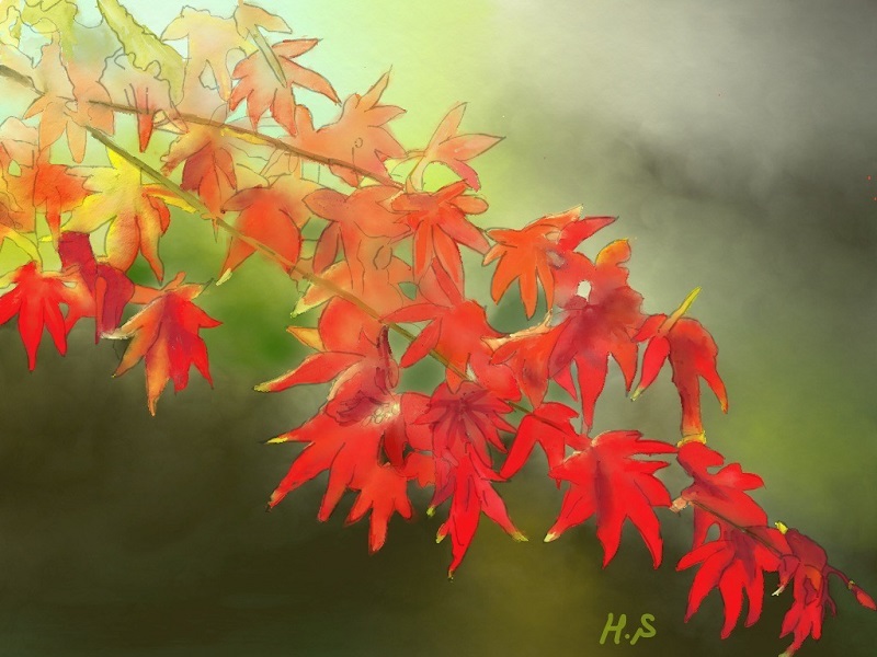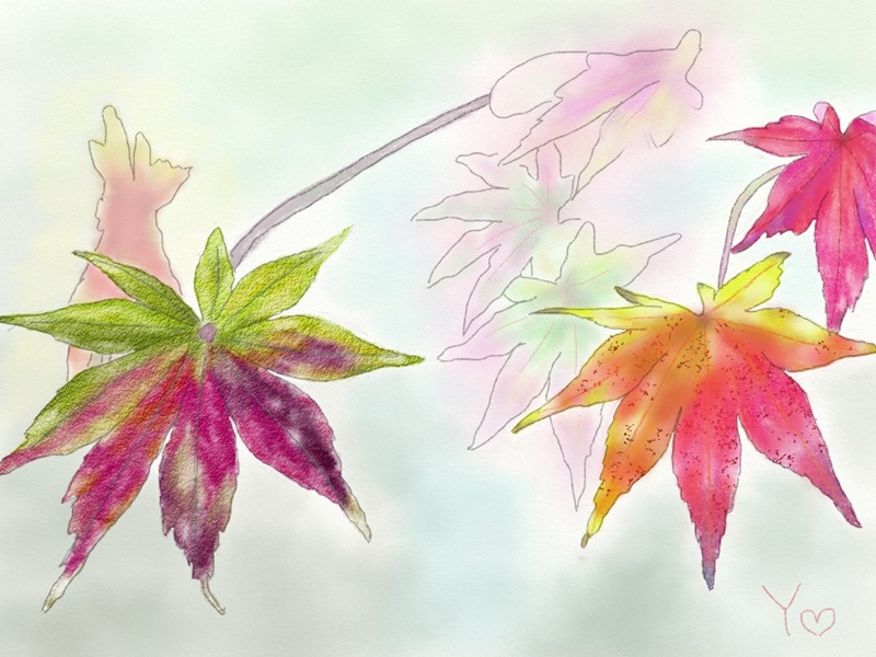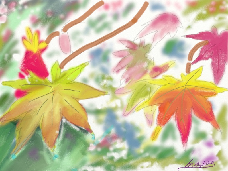 水彩クラスではiPad(ArtRageのアプリ)とパソコン(水彩7のソフト)を使って季節をテーマに楽しく水彩画を描いています。