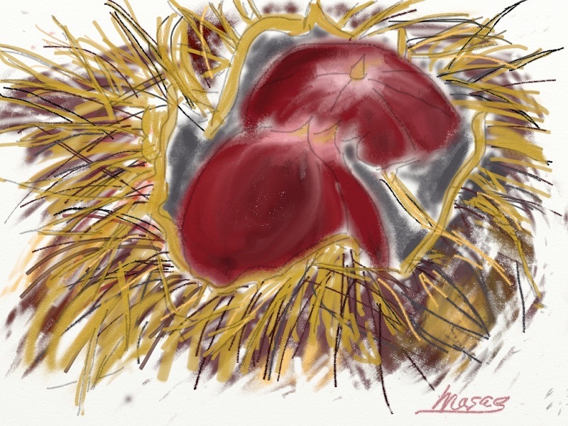どこに行っても冷房がんがんの10月です。まだまだの秋ですがそんな中水彩クラスでは「いろいろな秋」と題して秋の素材を描きました。これからやってくる秋をひと足早く感じていただけたら幸いです。秋の味覚も満載ですよ~!!