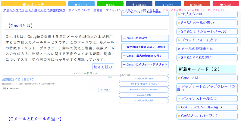 IT用語やスマホ用語について解説されているのですが、わかりやすくまとめられていておススメです。私は最近はまずここを見てから、わからないと他を探しに行きます。インターネット初心者向けにサイトを作っているとのことですので、わからないIT用語やスマホ用語が出てきたらぜひのぞいてみてくださいね。