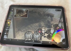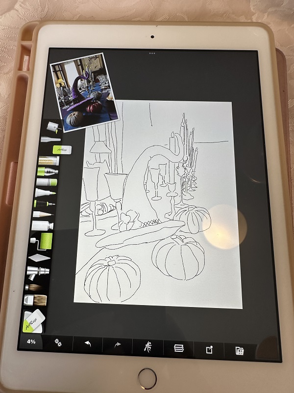 【iPadを持ってお外に飛び出しスケッチしてみませんか!ベンチでスケッチしてカフェで色付けを楽しみましょう。スケッチと言ってもまずは構図を決めてiPadで写真を撮ります。その写真をお道具の鉛筆でなぞっていきます。それをトレースと言いこれで下絵を作ります。なので絵心のない方でも安心して描けるわけです。】
