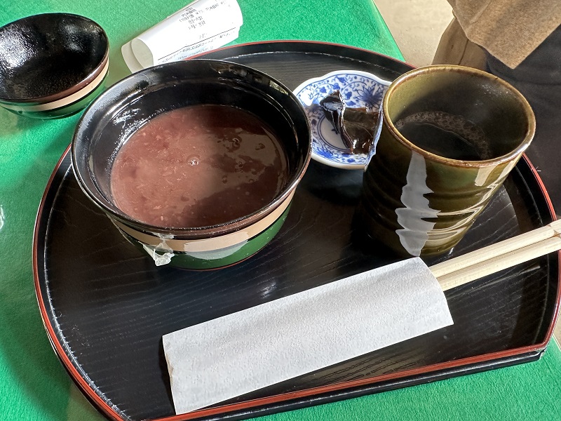 ランチは園内の「待春軒」でお蕎麦でした。もちろんあのお汁粉も、、、