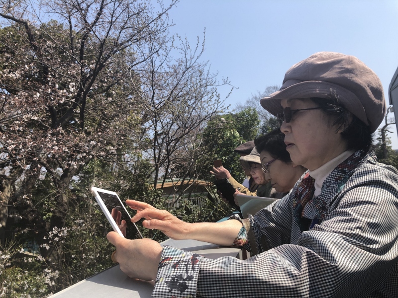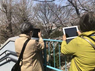 桜は丁度八分咲きで手頃の小枝を皆さん一生懸命撮影です。