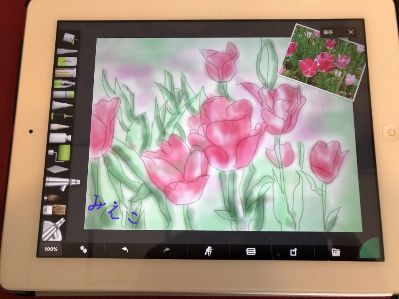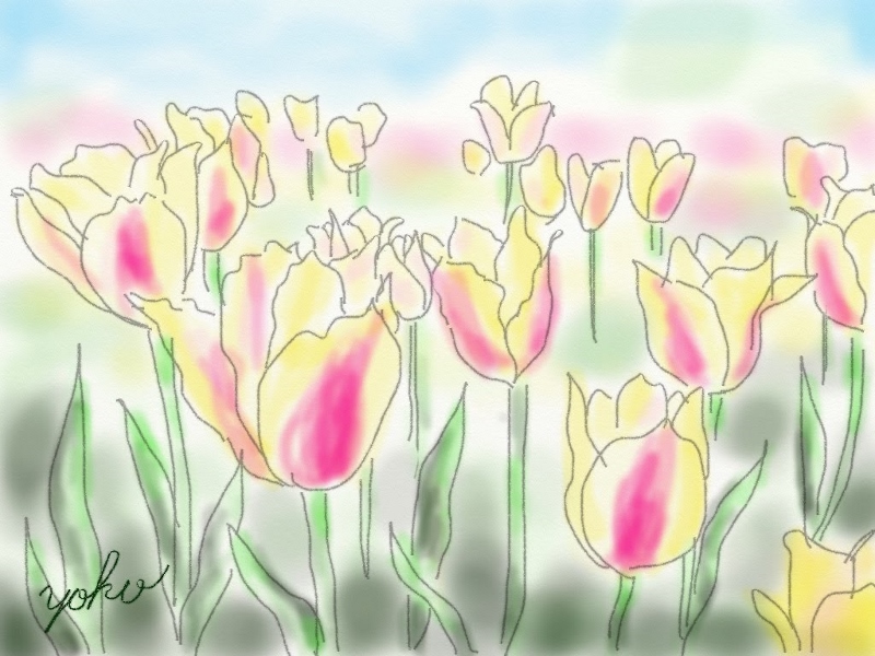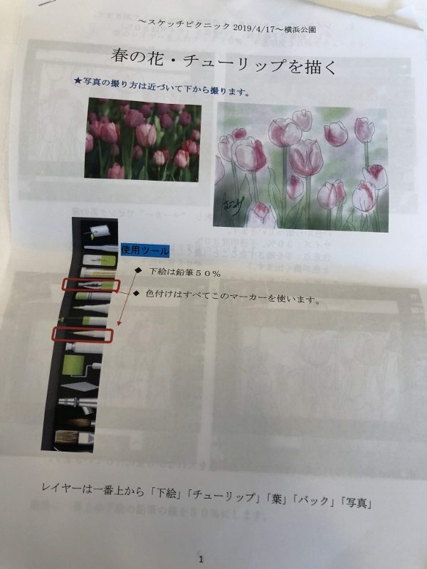 今年は日差しは少なかったのですが風も穏やかで心地よくチューリップもまさに開花時期で幸せいっぱいのスケッチピクニックが楽しめました。